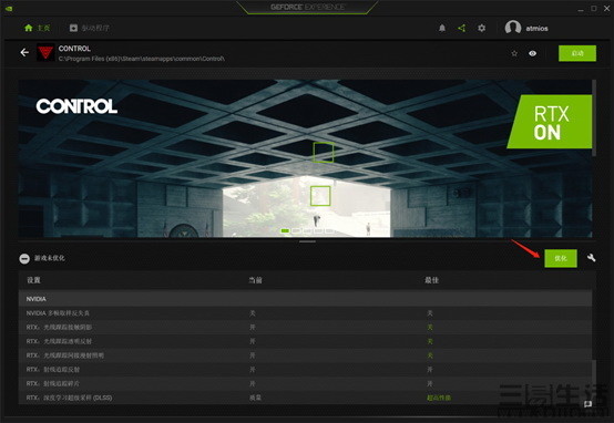 接下来,在主页上,选择您想要优化的游戏并单击 " 细节 " 。您将看到当前游戏未优化的设置以及 NVIDIA 游戏的最佳建议设置,然后单击优化。