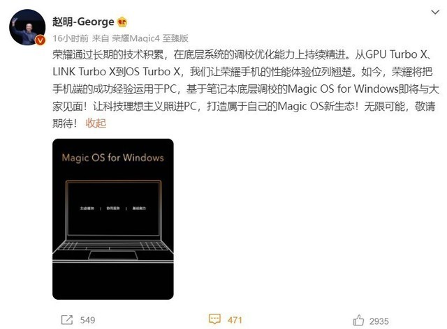 荣耀终端官宣 Magic OS for Windows