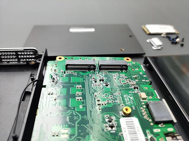 机体内有两个接口。 2您可以安装一个 m2. NVME 固态驱动器,带有2280 色谱和1 m2. SATA 固态驱动器,带有2242 色谱。主板被焊接到16GBDD4 2933兆赫内存。无法更换。同时,它甚至基于 逃避活跃的球迷。在长期运作期间维持系统的稳定。