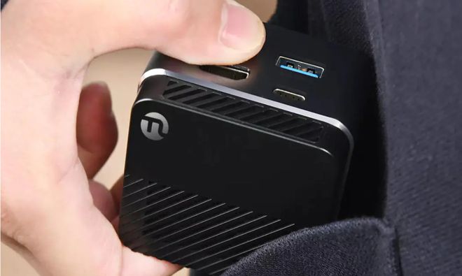 宿主的大小为155*80*19毫米。体积0.24L,机体包括一个HDMI2.0接口。1 TYPE-C 与输出能力的接口,支持双屏4K输出。1个2.5G网口,三个USB3.1港口相互作用,拥有2.5Gbps网络网关。除了有线上网之外,口袋微型主机还有英特尔的AX201无线网络卡。WiFi6和蓝牙5.2得到支持。
