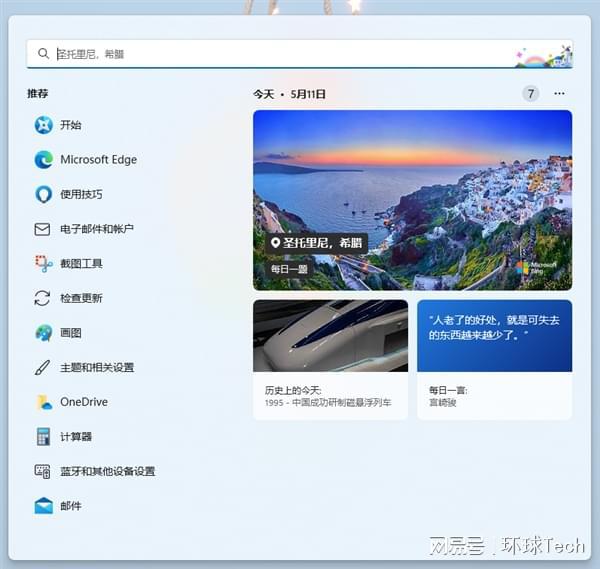 除了个性化更新版本号码外,Win11还有微软Bing提供的新搜索灯功能,将根据用户的位置和假日实时提供相关最新情况。