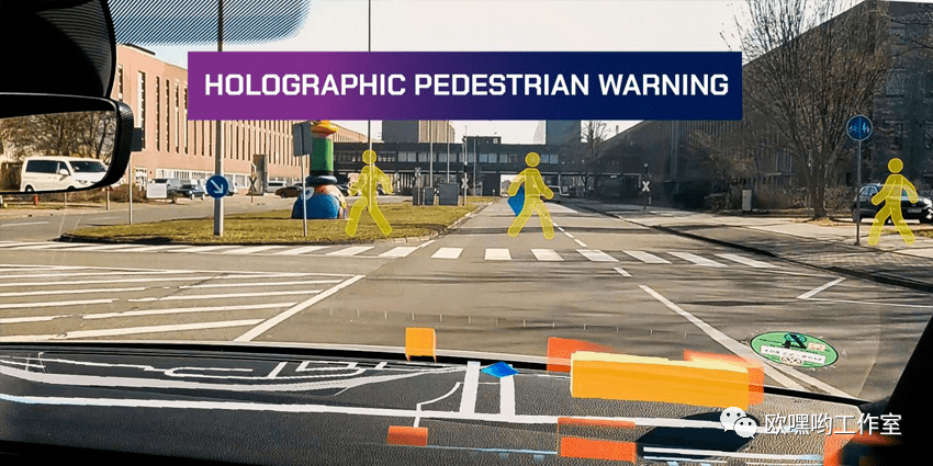 "我们与定位系统相连 以追踪车辆的下落"通过这种方式,在汽车外面,我们也可以安装3D物品。例如兴趣点信息。这开启了一个充满各种可能性的新世界。在司机前视镜中显示全息图不仅是可行的。使用者戴眼镜时, 也可以随处显示全息图。”