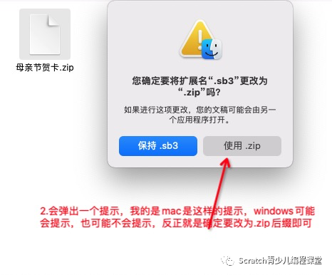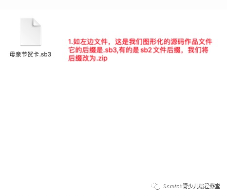 所以,这一操作阶段方法是今天拟定的。这种方法和图形编程软件的版本无关紧要。和电脑系统也无关,无论是苹果的Mac还是微软的Windows操作系统都能兼容这个方法,只要您的计算机可以将 sb2 或 sb3 文件转换为 zip 后缀文件 。然后将材料放入拉链袋。