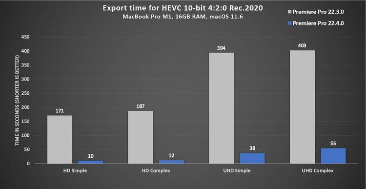 Adobe发行了Prime Pro 22. 基于英特尔和M1以及基于AMD GPU的WINDows设备的平台马科斯设备在出口10比特4:0的HEVC电影中改进了十倍。