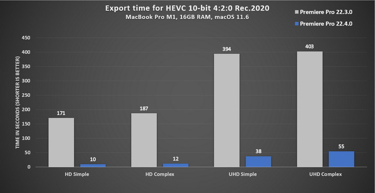 Adobe发行了Prime Pro 22. 基于英特尔和M1以及基于AMD GPU的WINDows设备的平台马科斯设备在出口10比特4:0的HEVC电影中改进了十倍。