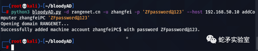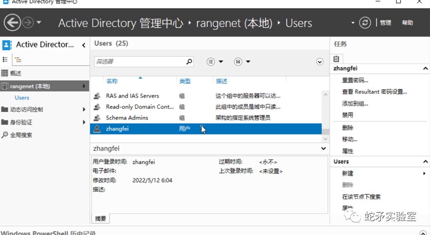 Zhangfei, 创建一个低权限 AD 用户: ZFpassword@ 123. com