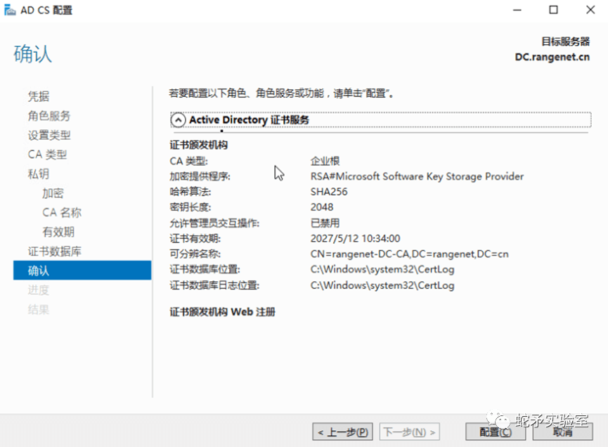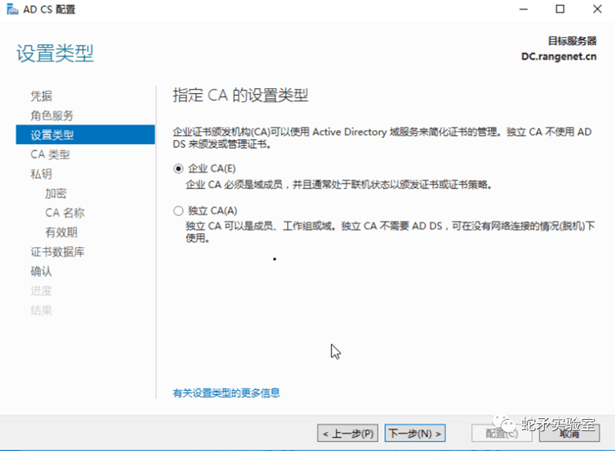 设置 ADCS 服务, 仅使用以下快照的内容, 其余为默认 。