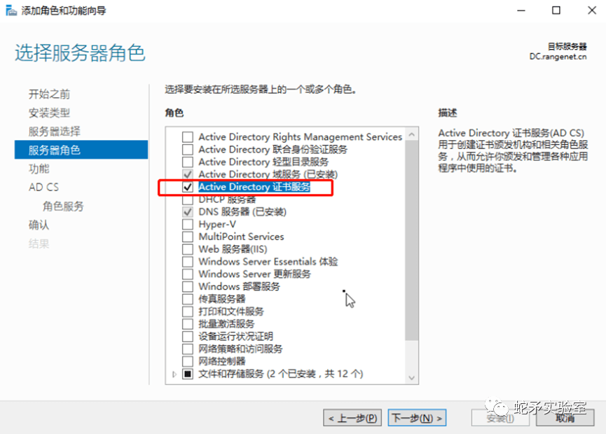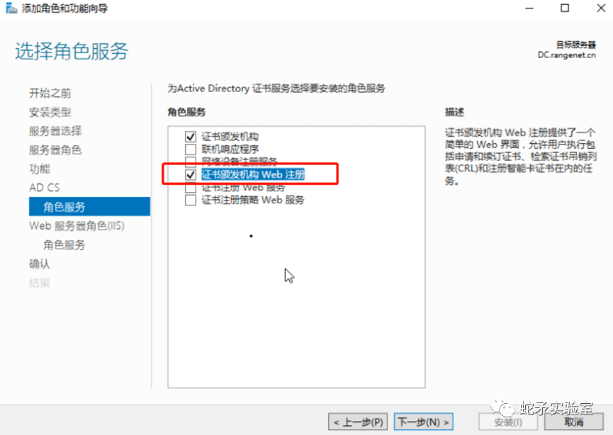 ADCS服务安装将在下面正式开始,只注意下列截图的内容,所有截图都是默认的。