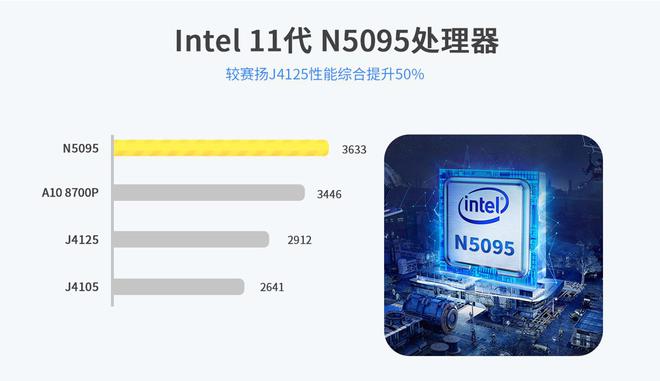 英特尔·加斯帕·莱西扬 N5095处理器它在英特尔牧场平台上拥有任何CPU中最大的TPD。达到了15W。它使用10nm程序。四行四行的CPU设计这是2011年埃及抗争特别报导的一部分。他有两块九千兆赫的能力CPU的预算能力比上一代J4125的预算能力高出50%以上。另外,这个芯片包括英特尔UHD成像卡片它由16个执行部分组成。450-750 MHz,支持 4K@ 60Hz 显示输出 。从性能上来看,N5095大约等于八代的i3 CPU。没有压力做日常工作,如办公室、录像、库存等等。在最小的中、低层绘图中,你甚至可以运行3D游戏,其图形性能需求相对较低,例如英雄联盟。