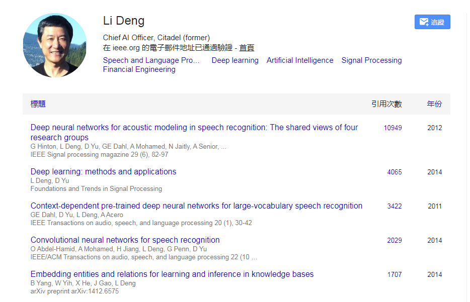 在近30年的学术生涯中邓博士有350多篇学术文章 归功于他的功劳他出版了几本关于机器学习和人工智能的书。根据《在自然语言处理方面的深学习》一书,它引起了全国劳工党专家和研究人员的极大关注。