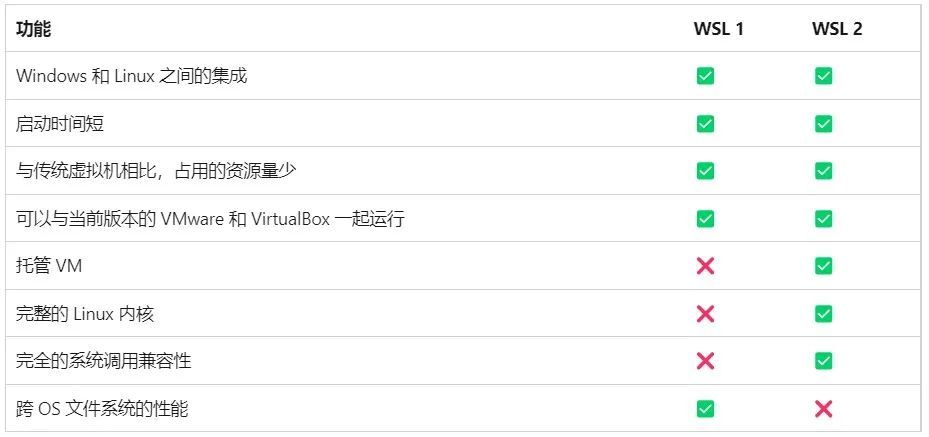 WSL2和WSL2之间的区别