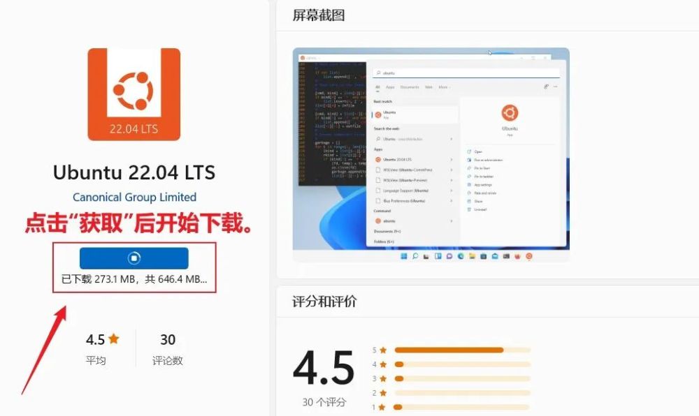 第3步:在微软商店上,搜索WSL并下载Linux版本。