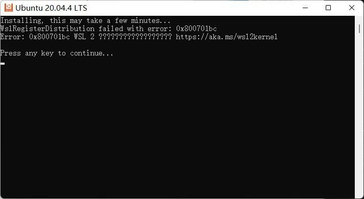 所以,我相信这是最新的Ubuntu版本 没有得到支持, 所以我从微软下载并安装了20个。 版本 04 仍然有问题, 但错误的代码已经改变了: 0x80701bc 。