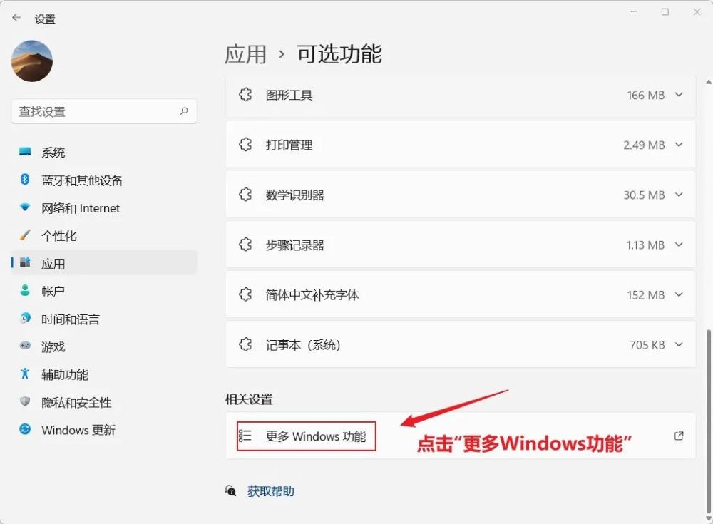 第一步是寻找“额外 Windows 功能 ” 。
