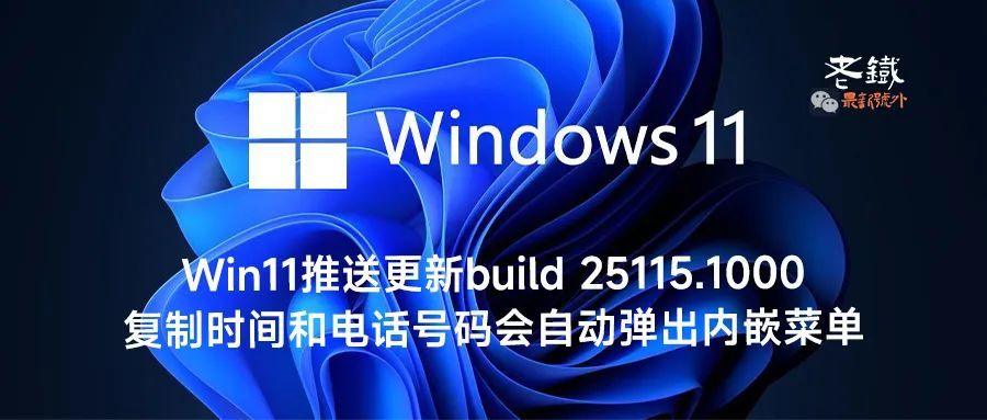 Win11推送更新build 25115.1000,复制时间和电话号码会自动弹出内嵌菜单