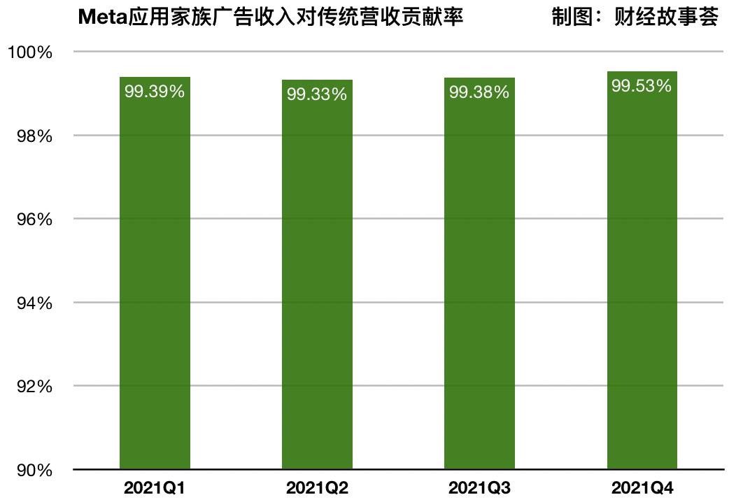 Meta是其母公司,它利用了家庭的全部广告收入,在2021年,该家庭创造了其正常业务的99%以上。