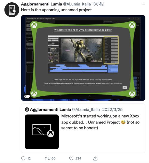 今天,Windows软件和Xbox游戏推文说,微软正在建造一个类似于Xbox动态背景编辑的APP,他在3月披露了APP的符号,他今天披露了该应用程序的一些接口图。