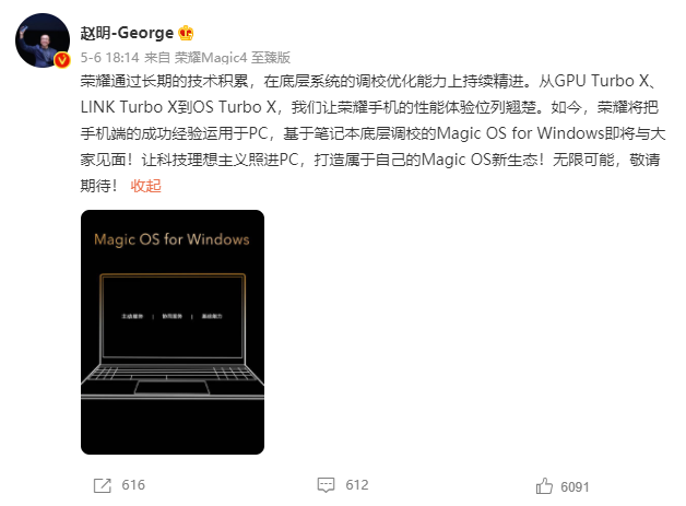 还有1天,5月16日,下午2时30分,MagicBook 14的新版本即将发布。这是玻璃窗魔力操作系统 和移动技术操作系统涡轮 首次在电脑上使用在OS涡轮技术的帮助下可以想象,总电力使用量将减少20%,船需更新20小时,船需过长。使用技术创造在线业绩时刻。