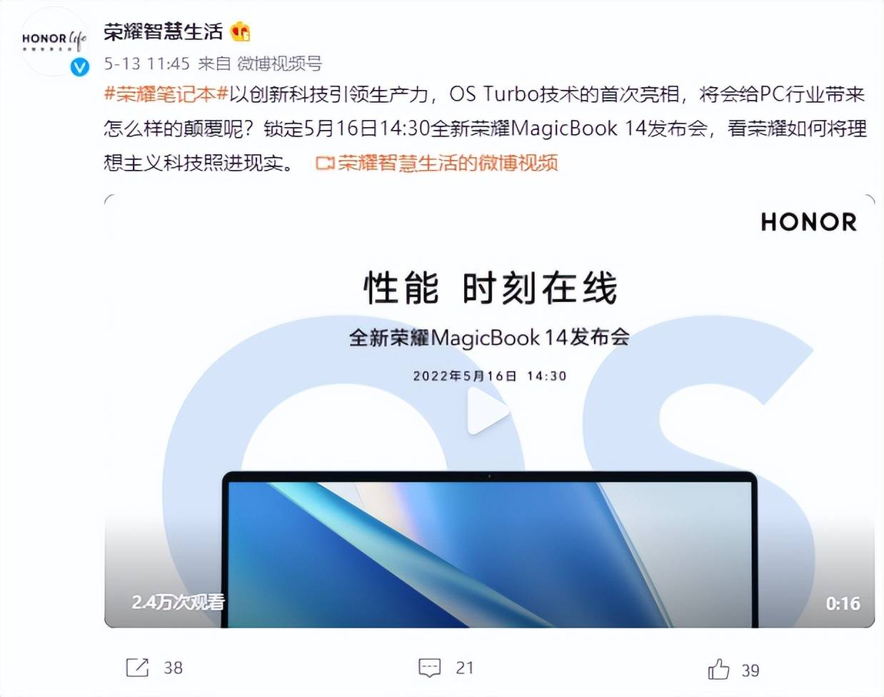 OS Turbo技术PC首秀即将上演 全新荣耀MagicBook 14让性能持续在线