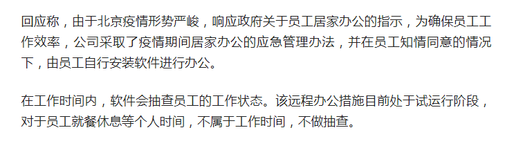 有人指出,答复有各种信息要点,管理战略正确无误;监测软件由有关人员在其知情的同意下使用;个人时间不受抽查。