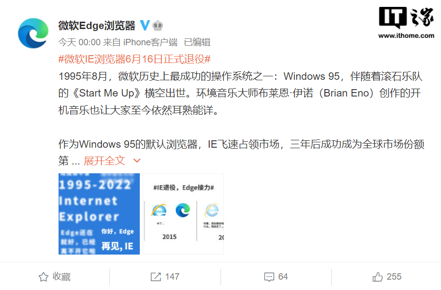 IT楼5月16日的新闻微软提醒@microsoft idege 浏览器@microsoft IE 浏览器6月16日正式退休。他们声称多年被封锁。我要说最后的告别从今以后,边界将继续以这种方式代表独立经济体。