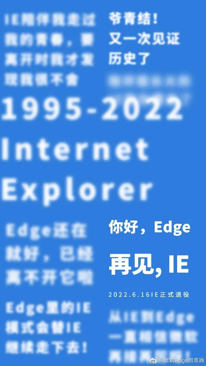 另一个奇妙的时代! 微软的最新消息是微软 InternetExplorer浏览器将于6月16日退休!