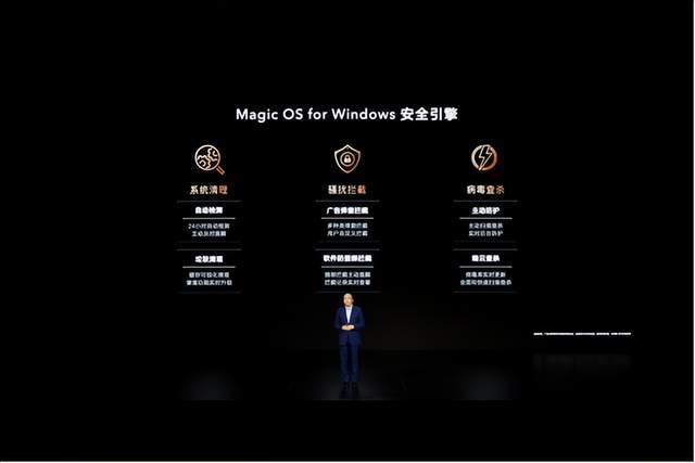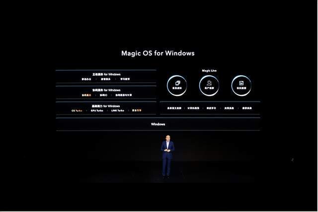 Windows的魔力操作系统 是对魔力操作系统战略进入PC市场的认可它运行微软Windows操作系统,以底芯片为基础。这是一种独特的技巧 用来提高行动能力 有尊严和温柔 以及和谐感与HONOR 魔术生活智能引擎一起, 这是笔记本电脑行业面向未来的技术结构。它将突出电话现有的基本技术能力,如OS Turbo、GPU Turbo、LINK Turbo和安全发动机。聪明、协调的跨设备的好处 包括荣誉分享、多屏幕和机器变换克隆现有移动办公室、音像娱乐、学习教育和其他智能情景。