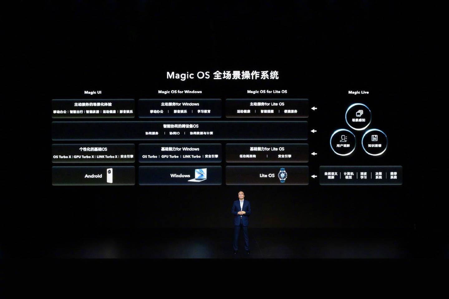 据介绍,底芯片和视窗操作系统是视窗魔力操作系统的基础。它们包括基本技术,如OS Turbo、GPU Turbo、LINK Turbo、安全引擎,以及智能协调的跨设备服务,如荣誉分享、多重屏幕协同作用和机器变换克隆。