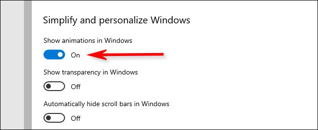 微软将动画图形称为“可访问性 ”, 但它也吸引了寻求更快计算经验的个人。 这只是定制 Windows 10 外观的许多选项之一。