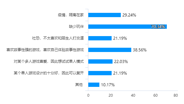 我们准备了一套调查表,在参与者之间分发,以便了解他们对多人单人模式的评估,截至5月16日,已有300多个参与者完成了这一评估。 参与者认为,缺乏公司是他们选择单人游戏的原因之一,随后是偏好自己的故事工作经验。
