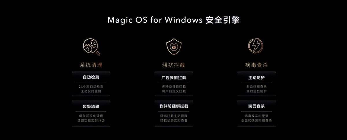 视窗系统安全引擎组件的魔力操作系统包括系统清理、骚扰拦截和病毒检测等。