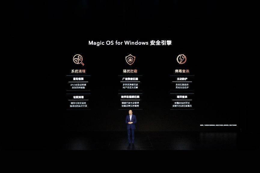 Windows的魔力操作系统 是对魔力操作系统战略进入PC市场的认可它运行微软Windows操作系统,以底芯片为基础。这是一种独特的技巧 用来提高行动能力 有尊严和温柔 以及和谐感与HONOR 魔术生活智能引擎一起, 这是笔记本电脑行业面向未来的技术结构。它将突出电话现有的基本技术能力,如OS Turbo、GPU Turbo、LINK Turbo和安全发动机。聪明、协调的跨设备的好处 包括荣誉分享、多屏幕和机器变换克隆现有移动办公室、音像娱乐、学习教育和其他智能情景。