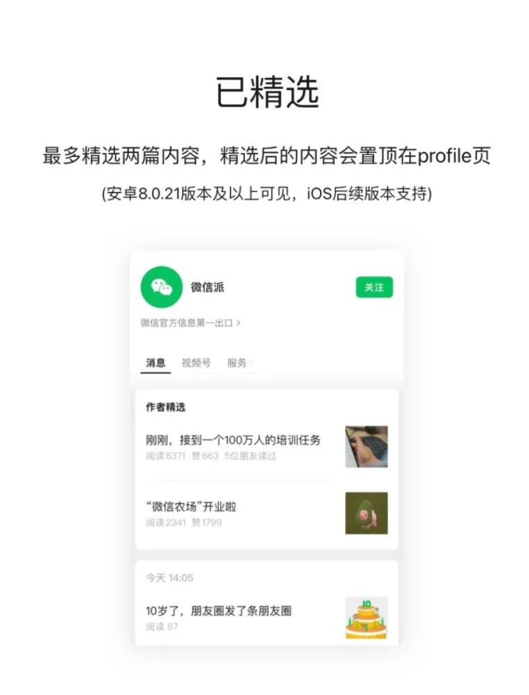除了按时间顺序显示文章外,公共编号主页现在还包括一个 " 作者选择 " 区域,显示最多两篇文章。