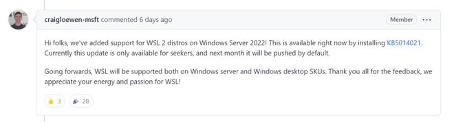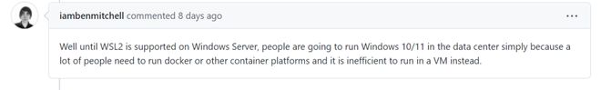 然而,人们继续表达他们的愿望,希望将WSL纳入GitHub的Windows服务器2022。