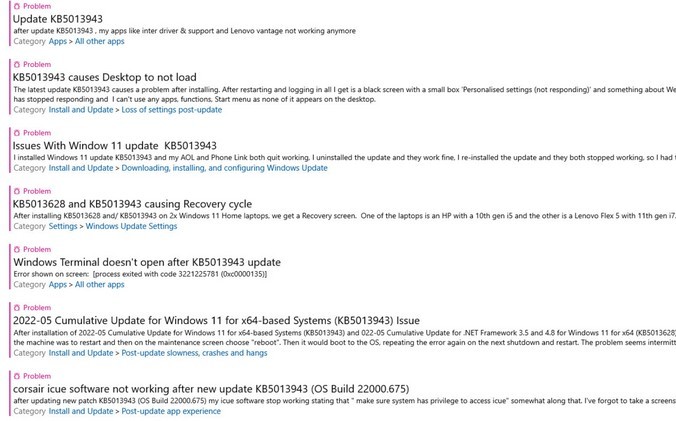 Windows反馈中心现在有大量5月11日升级的用户报告。