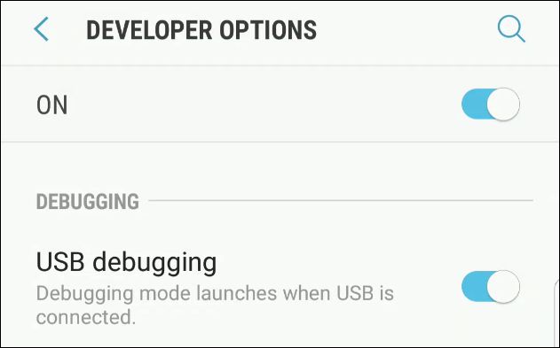 现在,准备你的安卓手机。访问开发者的设置并激活 USB 调试模式 。接下来,用USB线,连接到电脑上总之,您将前往设置>关于手机,7次,单击内部版本。然后前往设置>开发人员选项并启用“USB调试”。