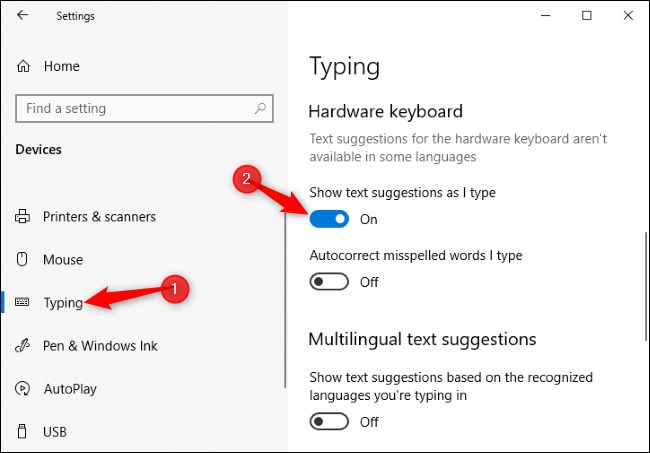 如何在 Windows 10 上为硬件键盘启用文本预测