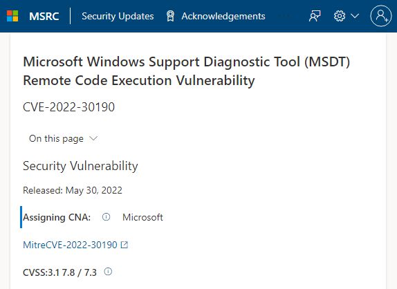 https://msrc-blog.microsoft.com/2022/05/30/guidance-for-cve-2022-30190-microsoft-support-diagnostic-tool-vulnerability/
