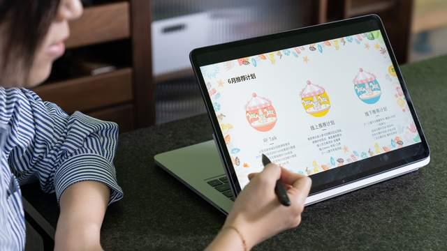 通过将屏幕旋转到键盘上,它进入一个画布模型,可以进行更直接的写作、绘图、创造性,在设计和创造性工作中对小伙伴来说是非常愉快和实用的。