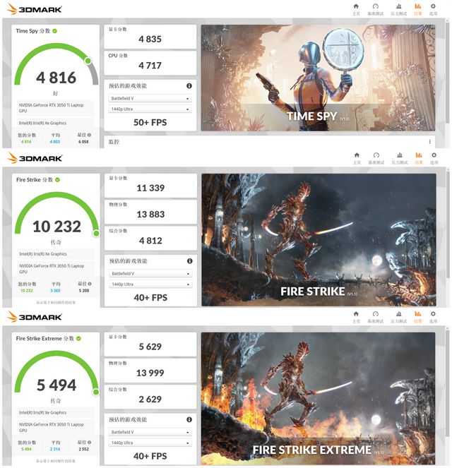 3DMark实测,时间间谍的总分是4816它有4835张卡片分数和4835张卡片。CPU 得分4717; 综合火力击中得分10232该卡的分数为11339分,而火击极端牌的分数为5494分。显卡分数5626。