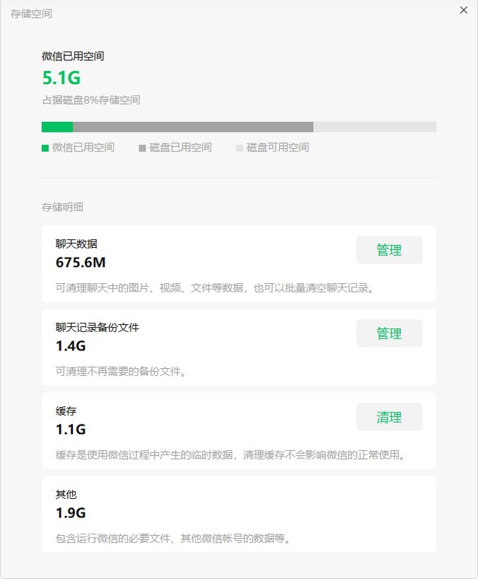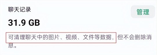 它分为三大类,可人工清理:聊天数据、缓存和杂项。