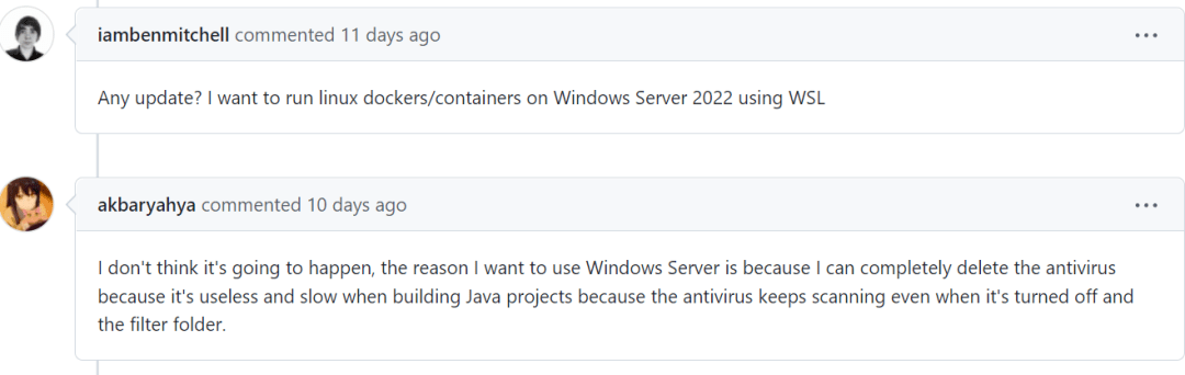 然而,人们继续表达他们的愿望,希望将WSL纳入GitHub的Windows服务器2022。