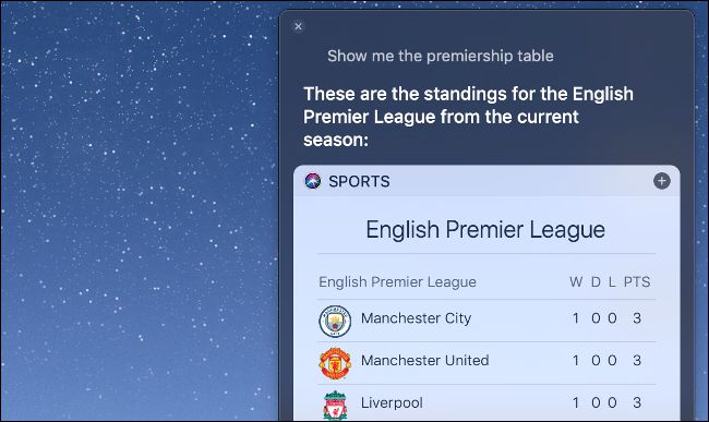 您也可以更改 Siri 的某些回应, 以显示在“ 今天” 屏幕上 。例如,如果你让Siri看看首相的名单单击小加符号 (+)(见上文) 就可以解答此查询。当有新信息可用时,它将自动更新。Siri可以做很多关于Mac的任务包括发送推文和电子邮件。当然,有互联网搜索。
