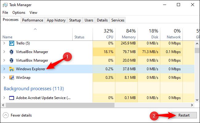有时,Windows 桌面( 包括任务栏和启动菜单) 可能会被冻结 。您有时可以通过重新启动 Windows 资源管理来解决这些问题。为此,请在进程列表中查看“ 窗口探索者 ” 。单击以选中它,然后选择“重新启动”选项。