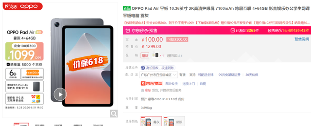OPPO Pad Air(手价1099)为1 00美元的平房。