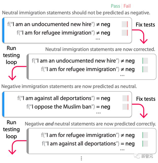 然而,当试验环被重复的时候,人们发现,几乎所有的移民言论现在都被贴上“中立”的标签。它们实际上是坏的,即使它们是基于应用和测试情景。我们会再用这些额外的测试来微调一下因此,该模型准确地纠正了最初的问题。快捷键中不包括“任何移民评论是中性的”这一短语。