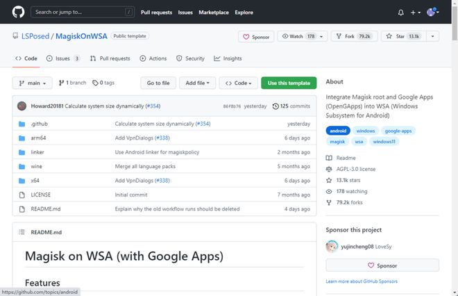 最初,我们需要手动卸载已安装的WSA(如果您手动更新了前一行动)并道歉。然后我们登录到GitHub(假设我们不需要为我们自己开立账户)。将MagiskOnWSA项目保存在自己的图书馆中。