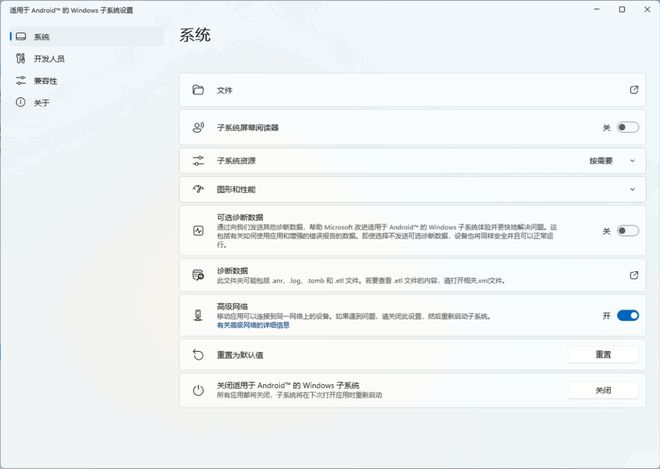 以前,《开发者模式》被正式委托给另一个分组,即开发者。我们可以使用这个网关访问WSA开发商模式。ADB 命令用于手动安装程序; 在新组中, 可以为每个安装应用程序定义“ 兼容性 ” 。例如,我们现在可以强迫应用不可调整的应用程序。和箭头,等等。由于WSA建在Linux 2的Windows子系统上, 门户的新版本还包括“备选诊断数据”和“高级网络”选项。此后,WSA和Windows核心系统一直没有进入网络部分。这使得我们很难上网进入子系统。