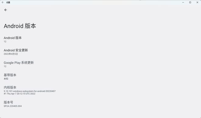 本次更新与先前的WSA之间的最大区别是,底系统版本很可能升级为Android 12L,Linux内核版本升级为5.Ten.101。