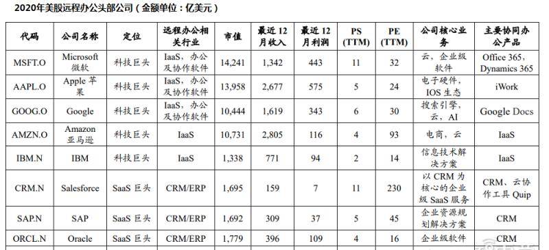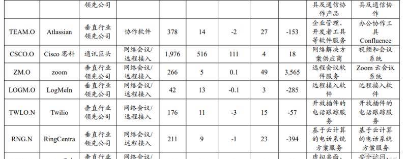 从整个产业链来看,远程工作公司分为五类:在IaaS(基础设施服务)中提供基本服务的云计算公司;办公室软件公司;CRM、ERP(企业资源规划)等软件软件制造商Saath(软件服务);与软件互动的公司(合作软件);网络会议和远程访问公司。